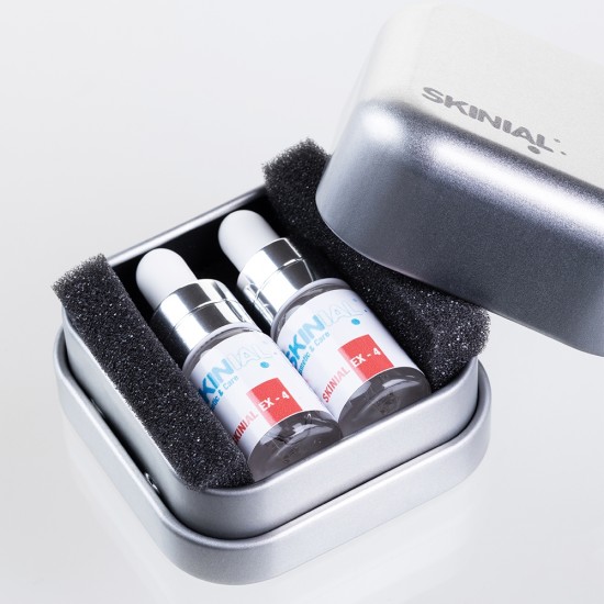 2 flacons en verre de sérum d’enlèvement de 3,3 ml chacun, avec pipette.
